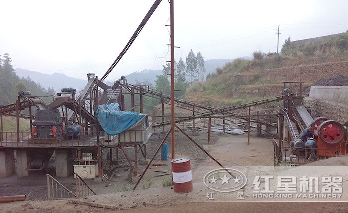 固定式鹅卵石粉碎作业现场,整体费用50万左右