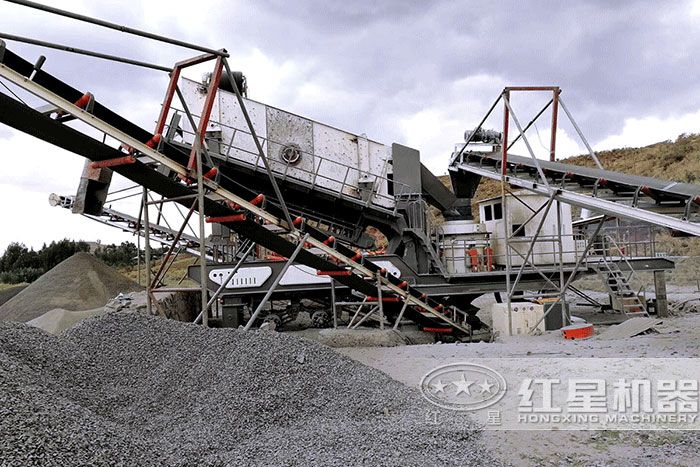 配置设备:移动破碎机、给料机、振动筛、皮带输送机